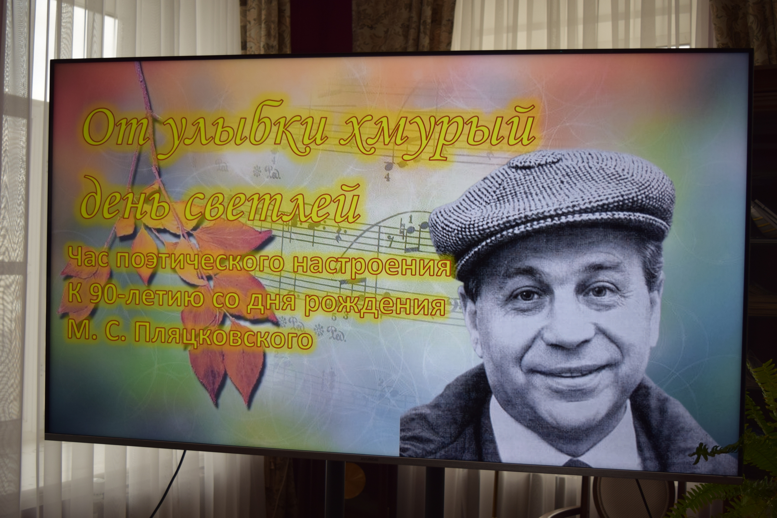 Сегодня, в Центральной районной библиотеке г. Мариинский Посад прошел теплый и душевный час поэтического настроения «От улыбки хмурый день светлей», посвященный 90-летию со дня рождения замечательного советского поэта-песенника Михаила Спартаковича Пляцковского. Имя этого автора знакомо каждому с детства, ведь его стихи и песни стали настоящим саундтреком для нескольких поколений.
