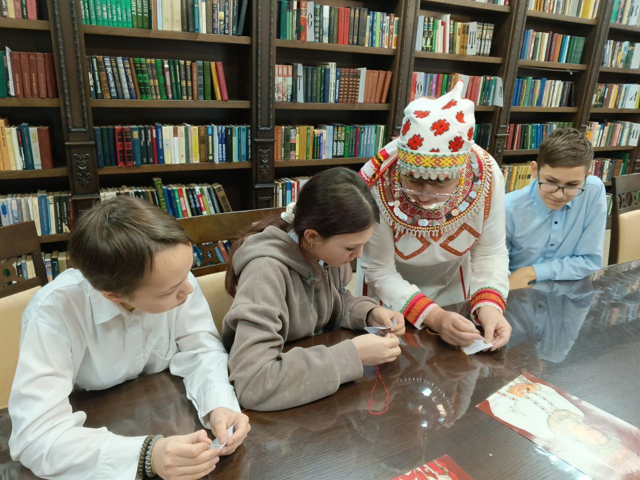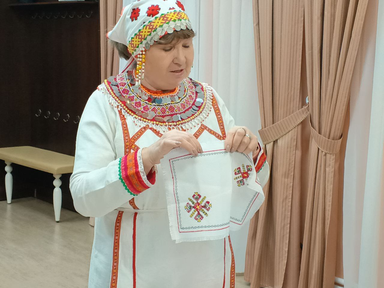 С ведущей Татьяной Волостриговой школьники соприкоснулись с удивительным и загадочным миром чувашской вышивки, миром чувашских узоров. Познакомились с предметами убранства, украшенные вышивкой, чувашскими орнаментами и символиками цветовых соотношений, а также узнали, что по одежде можно узнать не только о возрасте, положении в обществе, но и о семье человека по вышитому семейному символу – гербу.
