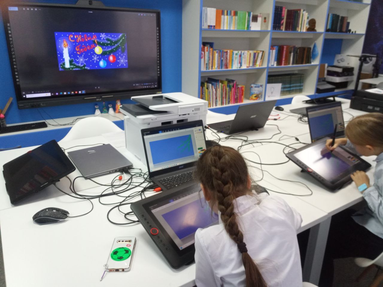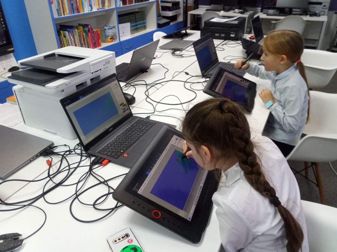 Ключевым событием дня стала итоговая практическая работа. Используя графические планшеты, юные участники продемонстрировали, насколько уверенно они теперь владеют цифровыми инструментами. В своих проектах они умело применили весь спектр навыков, приобретенных за курс: от базовых операций до продвинутых техник рисования и редактирования в стандартной, но такой многогранной программе Paint.