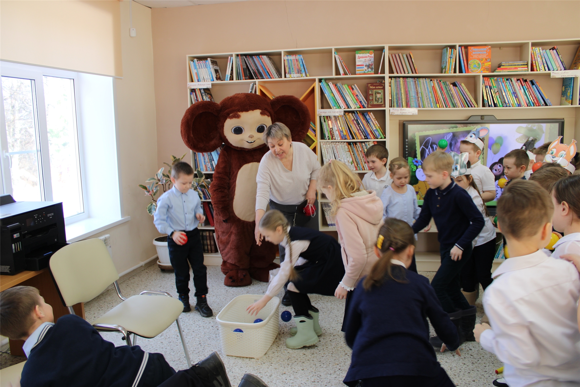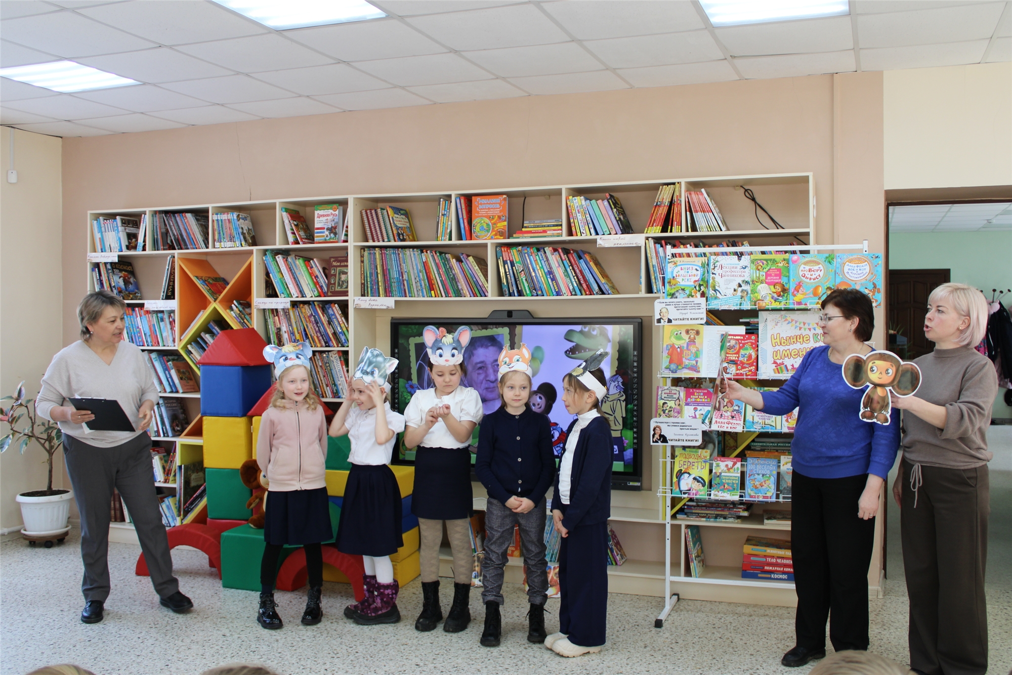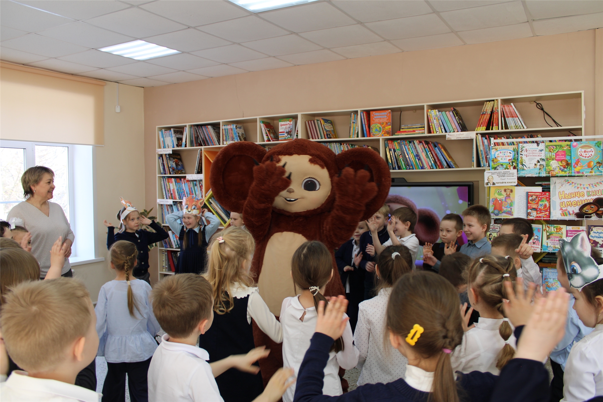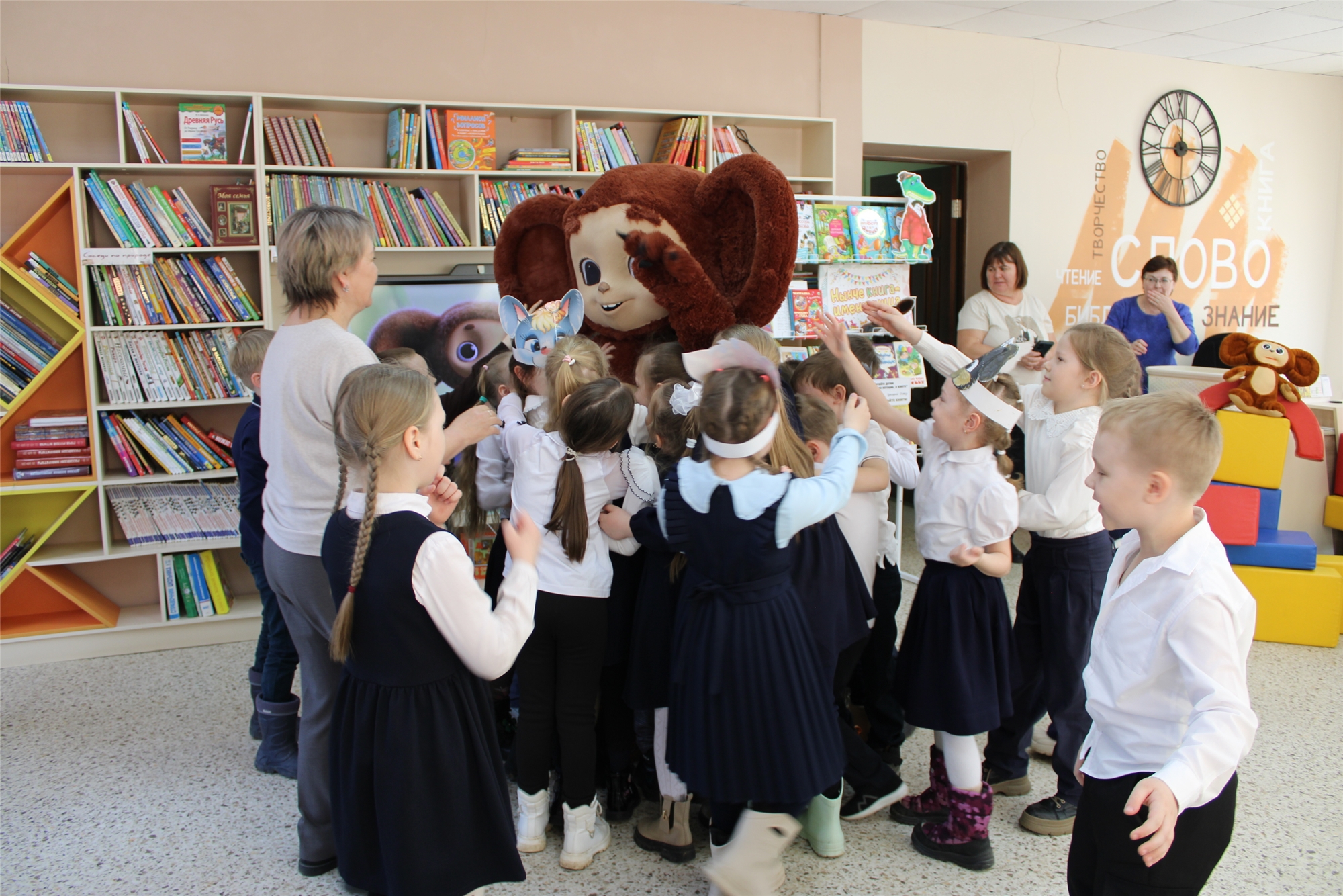 Сегодня, в честь 60-летия книги, Детскую библиотеку посетили первоклассники и узнали о шаловливых детских годах Эдуарда Николаевича, о его ответственном отрочестве и о том, что сподвигло его на написание такой доброй истории. Волшебным заклинанием оживив Книжных героев, читатели спели любимую песенку Гены, построили настоящий Дом дружбы и нашли хороших друзей для Чебурашки. Был для ребят еще один замечательный сюрприз – праздник посетил настоящий Чебурашка, а в руках у него была авоська с мандаринами для веселых эстафет. После долгих объятий любимец детей поиграл с ребятами в танцевальные игры.