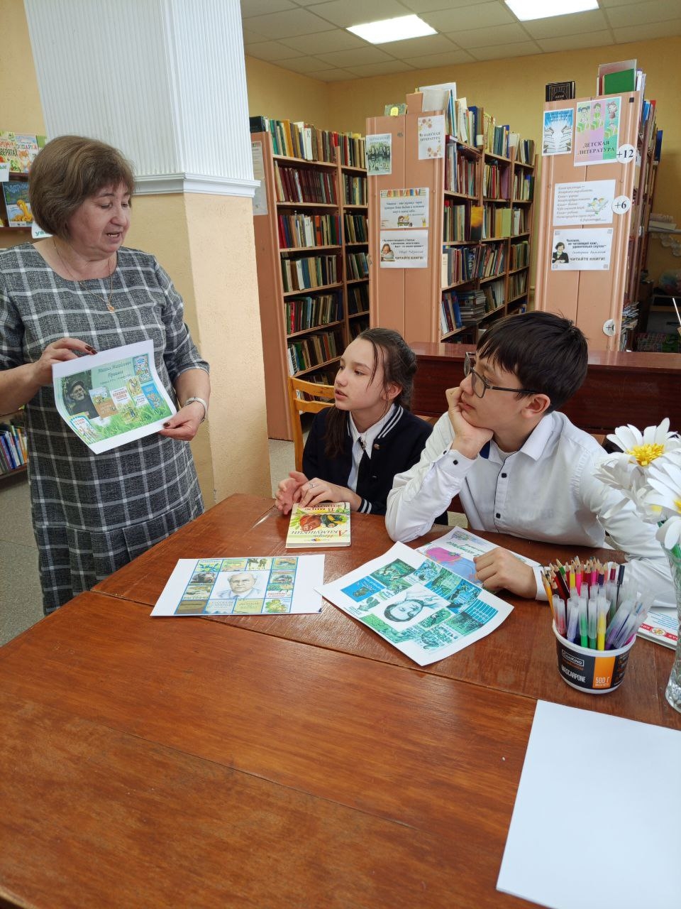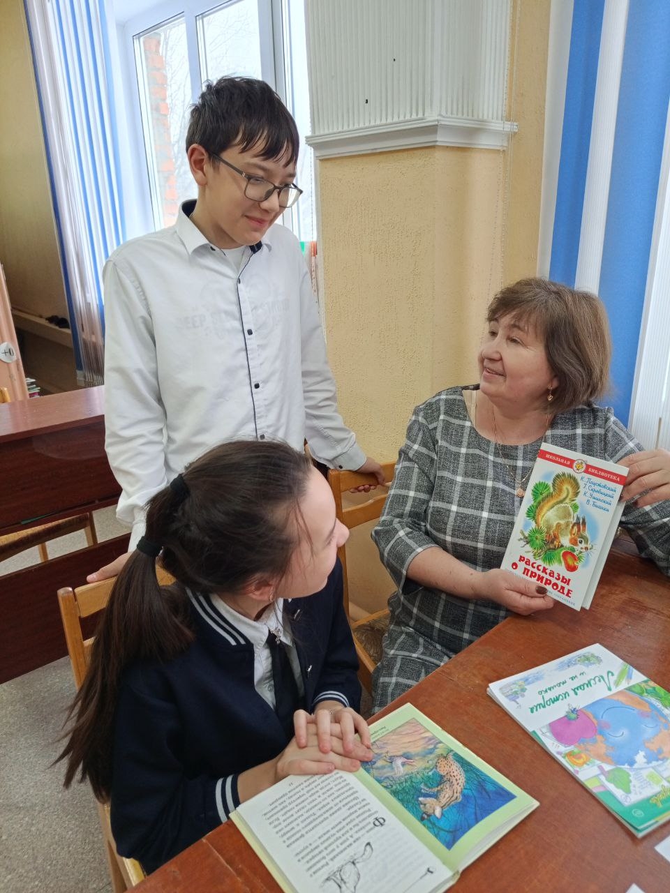 Библиотекарь провела обзор книг, рассказала ребятам, что книги этих писателей читаются легко и увлекательно. Они учат читателей всматриваться в окружающий мир, видеть красоту в обыкновенной коряге, искать ответы на вопросы, любить родную природу и беречь её. Читая эти книги, мы задумываемся, радуемся, огорчаемся, удивляемся и наблюдаем.