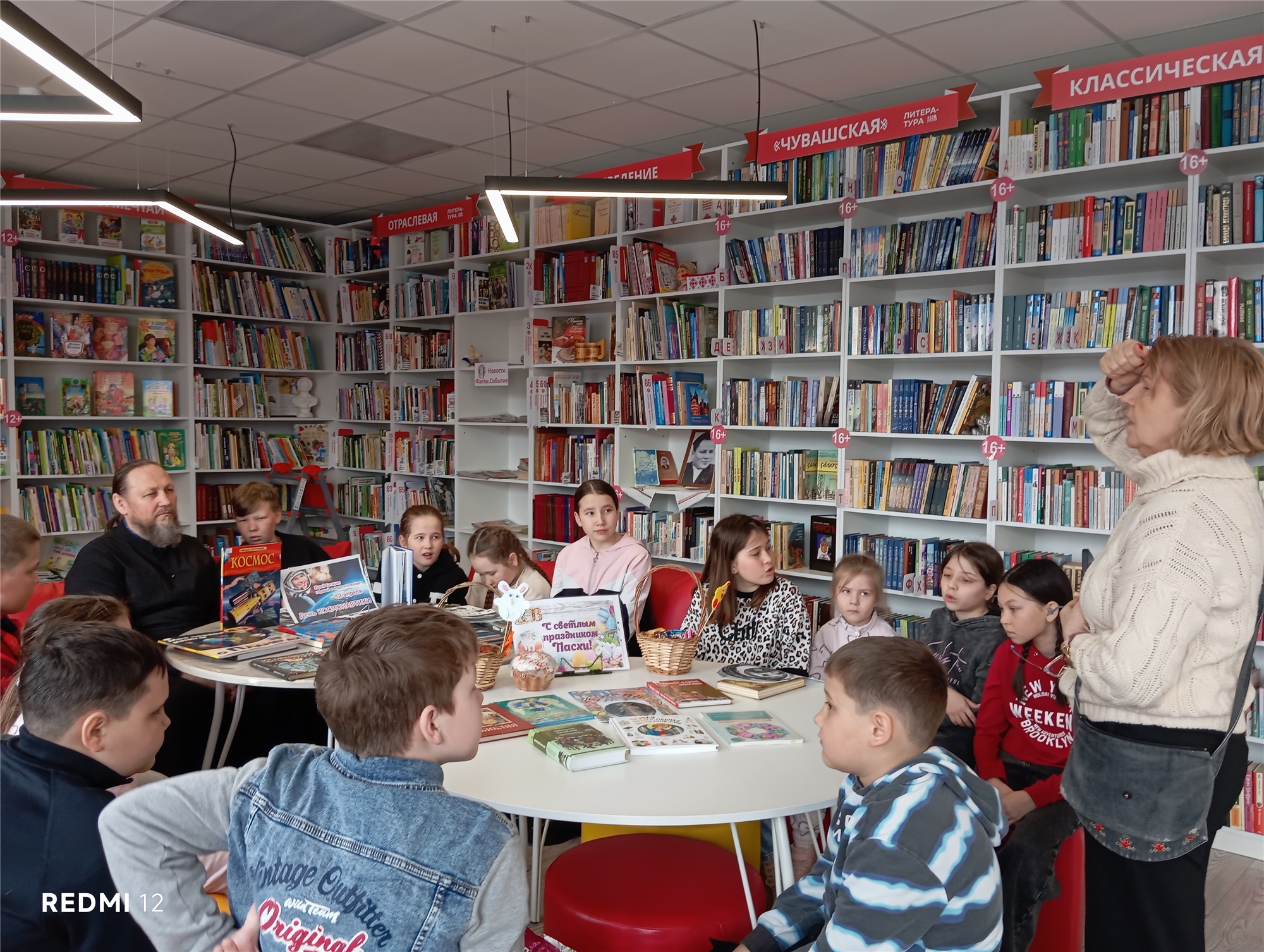 В Октябрьской сельской библиотеке провели цикл мероприятий, посвященных Дню Светлой Пасхи. В рамках праздника организовали встречи за круглым столом на тему «Пасхальные традиции». В них участвовали дети и их семьи. Настоятель церкви Введения Пресвятой Богородицы села Первое Чурашево, протоиерей Алексий Сорокин, и его воспитанники из воскресной школы внесли в мероприятие особую атмосферу. После беседы о празднике отец Алексий ответил на вопросы детей. Их интересовали православные традиции и вера в Бога. Также провели исторические квесты «Пасхальные узоры», где рассказали об истории христианства и возникновении традиций празднования. Еще была викторина «Светлая Пасха». По итогам викторин и игр участников наградили сладкими призами и подарками. Особенно впечатлил рассказ воспитанников воскресной школы села Первое Чурашево «В ожидании Пасхи». Они рассказали о подготовке к традиционным службам в церкви. Этот рассказ тронул подростков и взрослых из села Октябрьское.