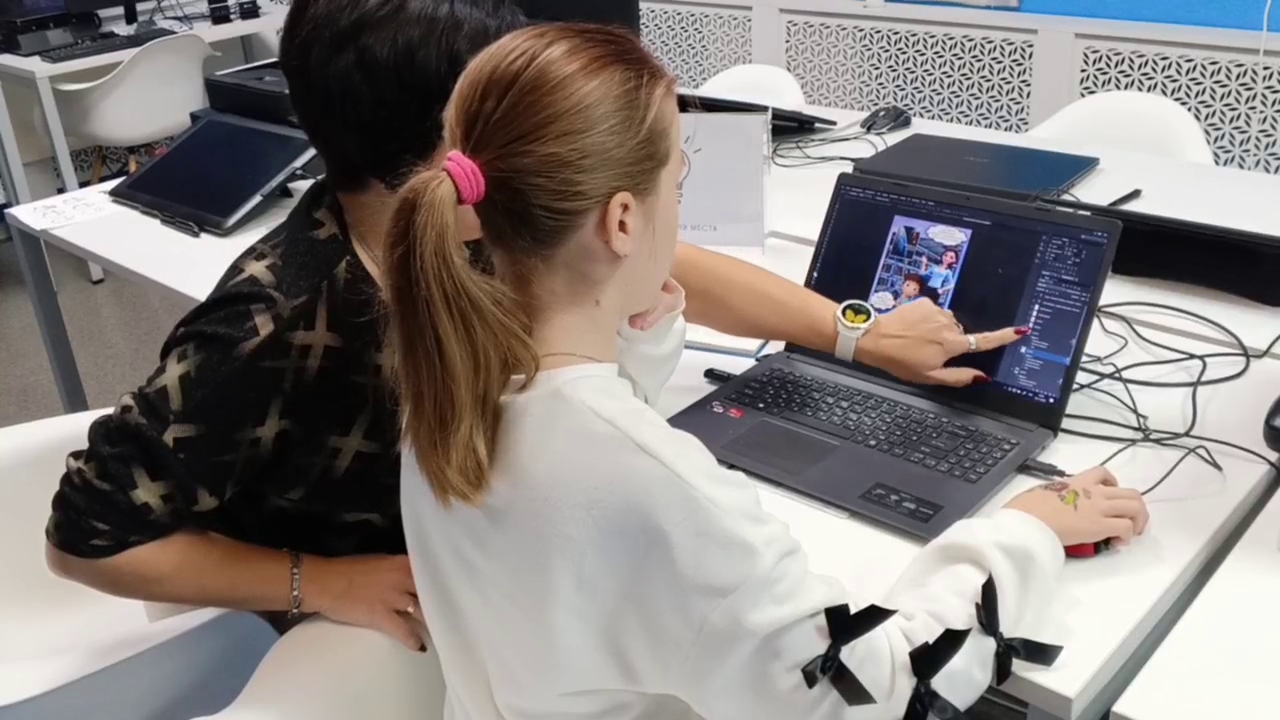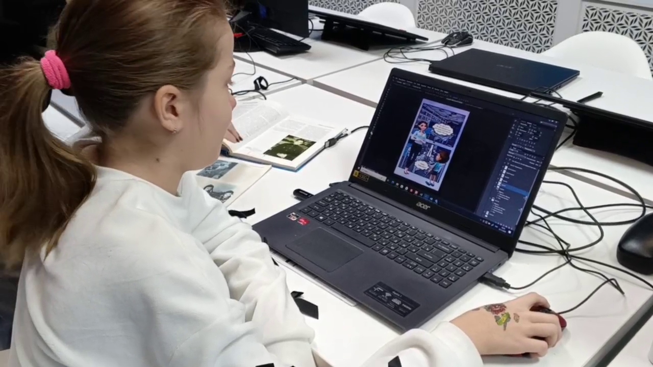 - Рассказала, в каких программах рисовали и монтировали комикс.